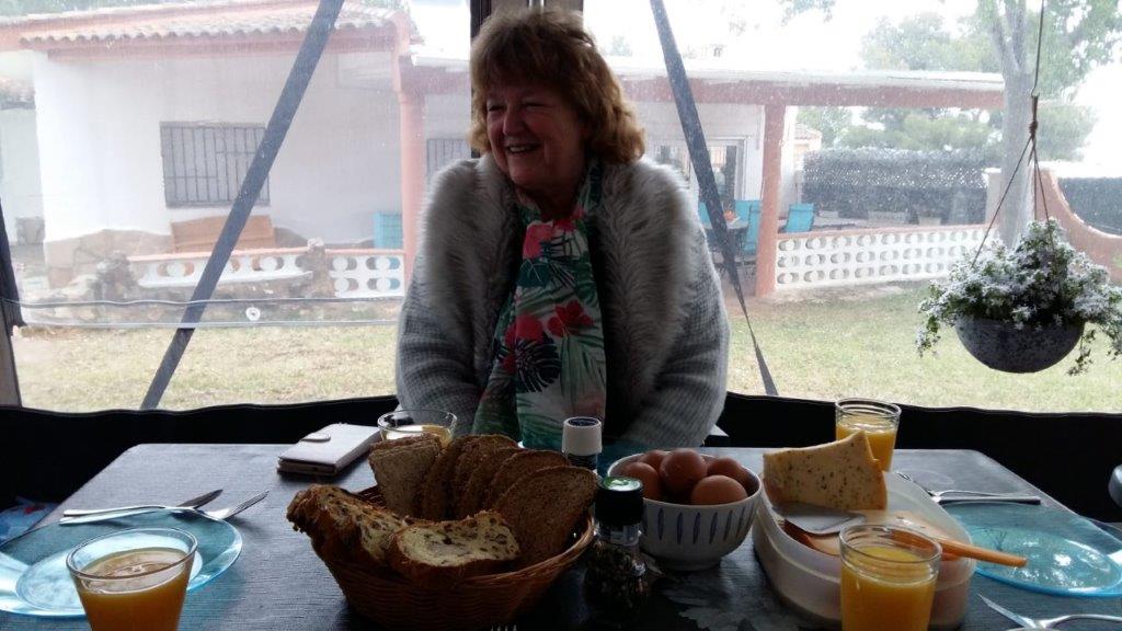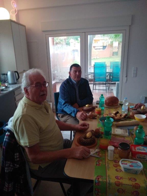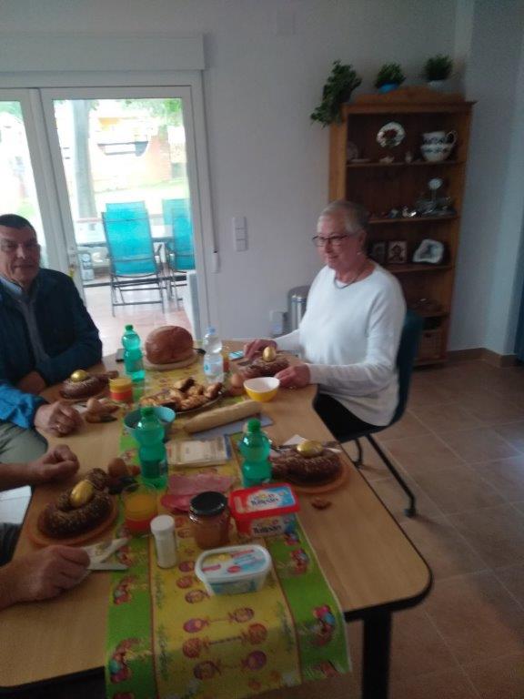 Op z'n Spaanse paasbest aten we een lekker paasontbijt met elkaar: 1 keer in de caravan van Jan & Christa en 1 keer in onze eetkeuken met de nog wat onbekende Spaanse ontbijtmeukjes (zie de foto's).