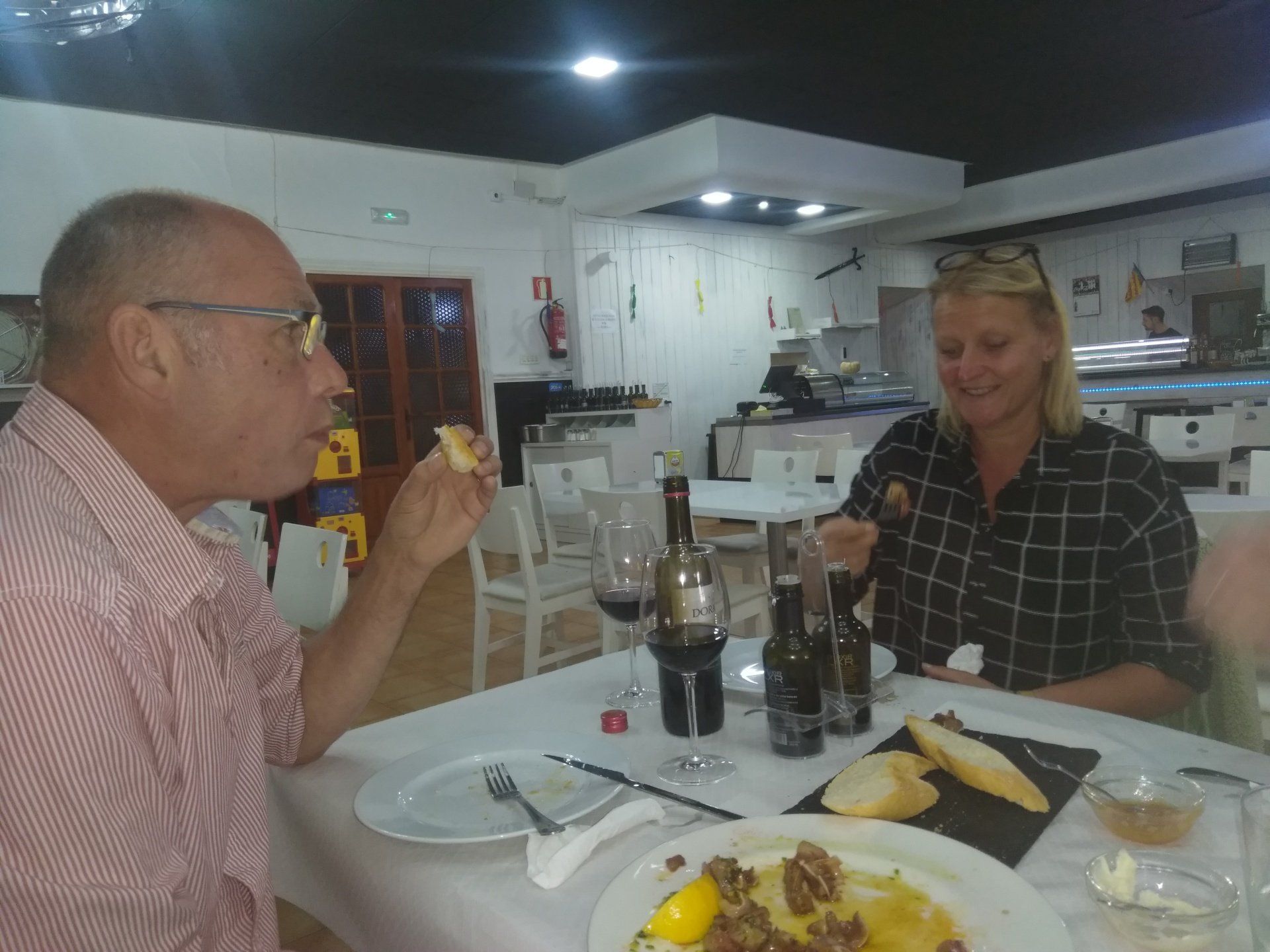 We hebben in een restaurant voor het eerst varkensneuzen en -oren gegeten (yek! Niet doen!)