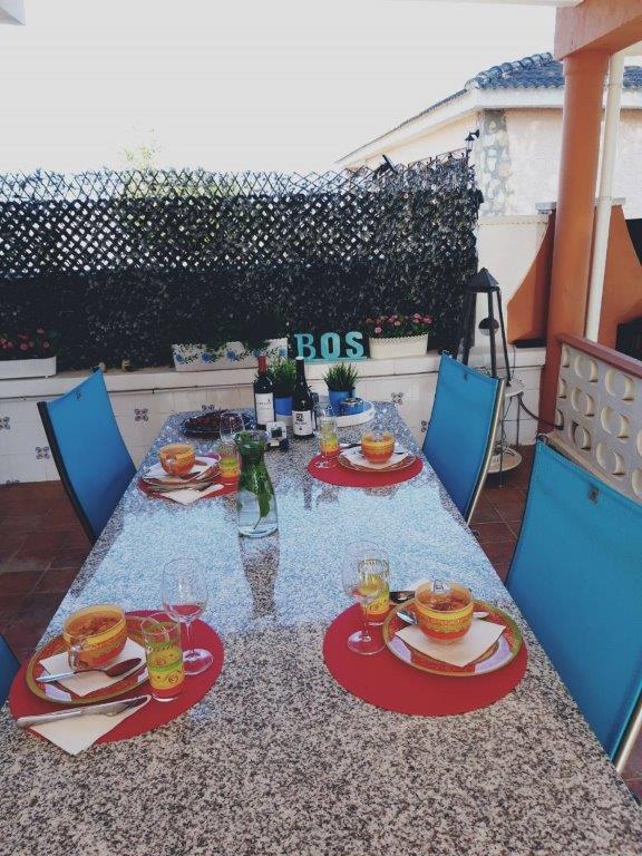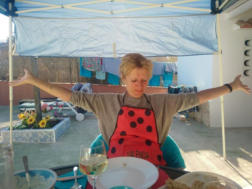 Gezellig dat het was! Heerlijk met 's avonds elkaar een wijntje en biertje drinken, kleppen met elkaar over ... wat dan ook (lekker vrijuit praten) onder het genot van een lekkere maaltijd en nog meer drank. Muziek (..... ), zwemmen, discolamp aan, paella maken, verhalen delen, jurkjes kopen, plaatsje bekijken, geweldige tijd met elkaar! Relaxed, gezellig, ontspannen, outside the box denken, toppie toppie toppie!