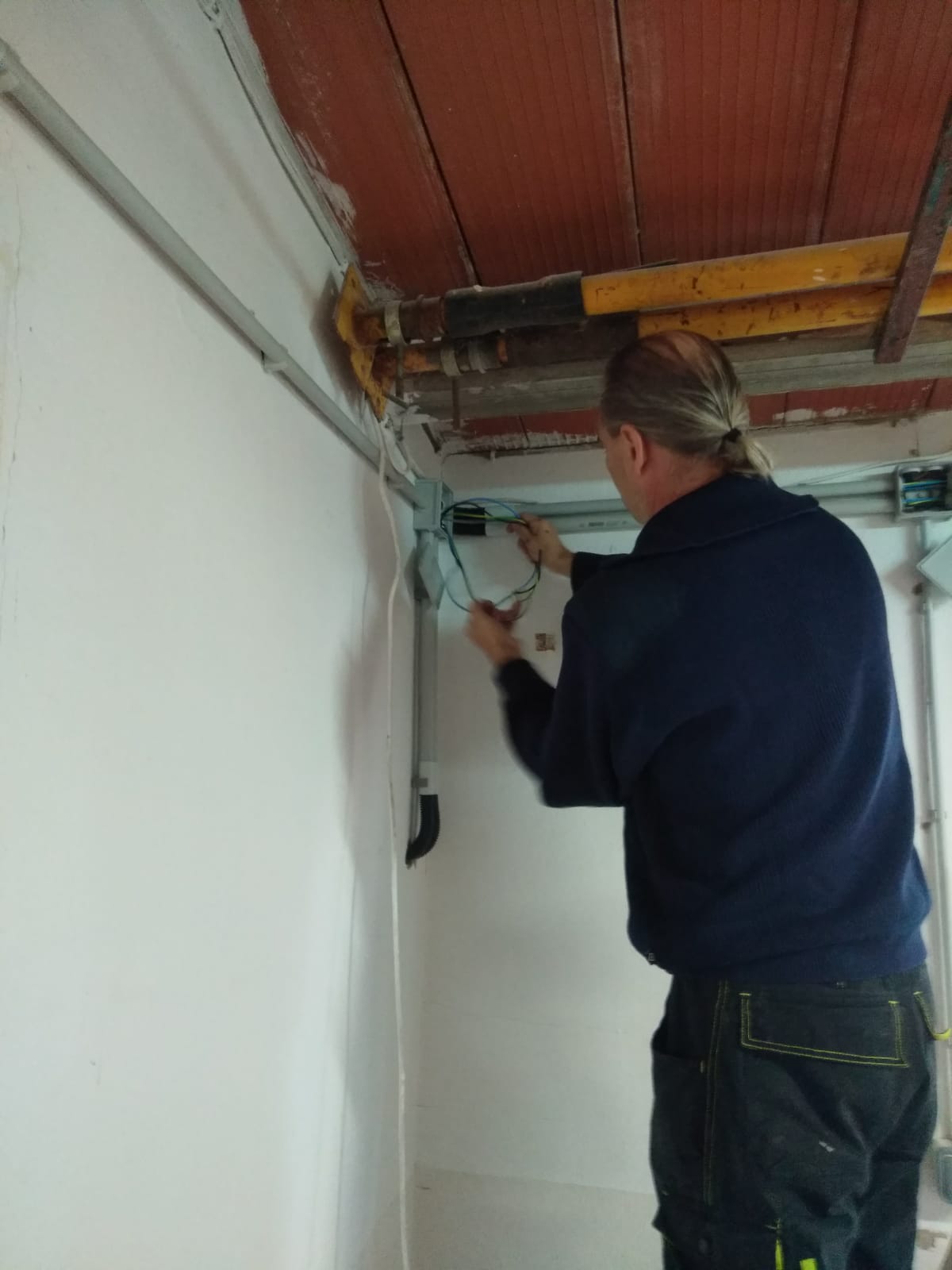 De elektriciteit wordt compleet vernieuwd. Alle draden worden vervangen, nieuwe leidingen getrokken, nieuwe groepen gemaakt en alles wordt geaard. Het is dus niet uitgesloten dat we ook wel eens zonder stroom zitten.....