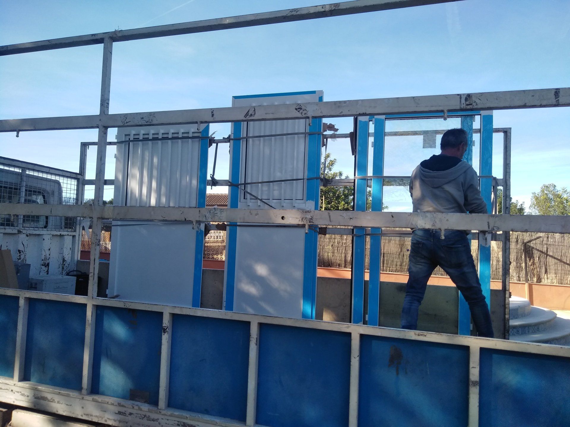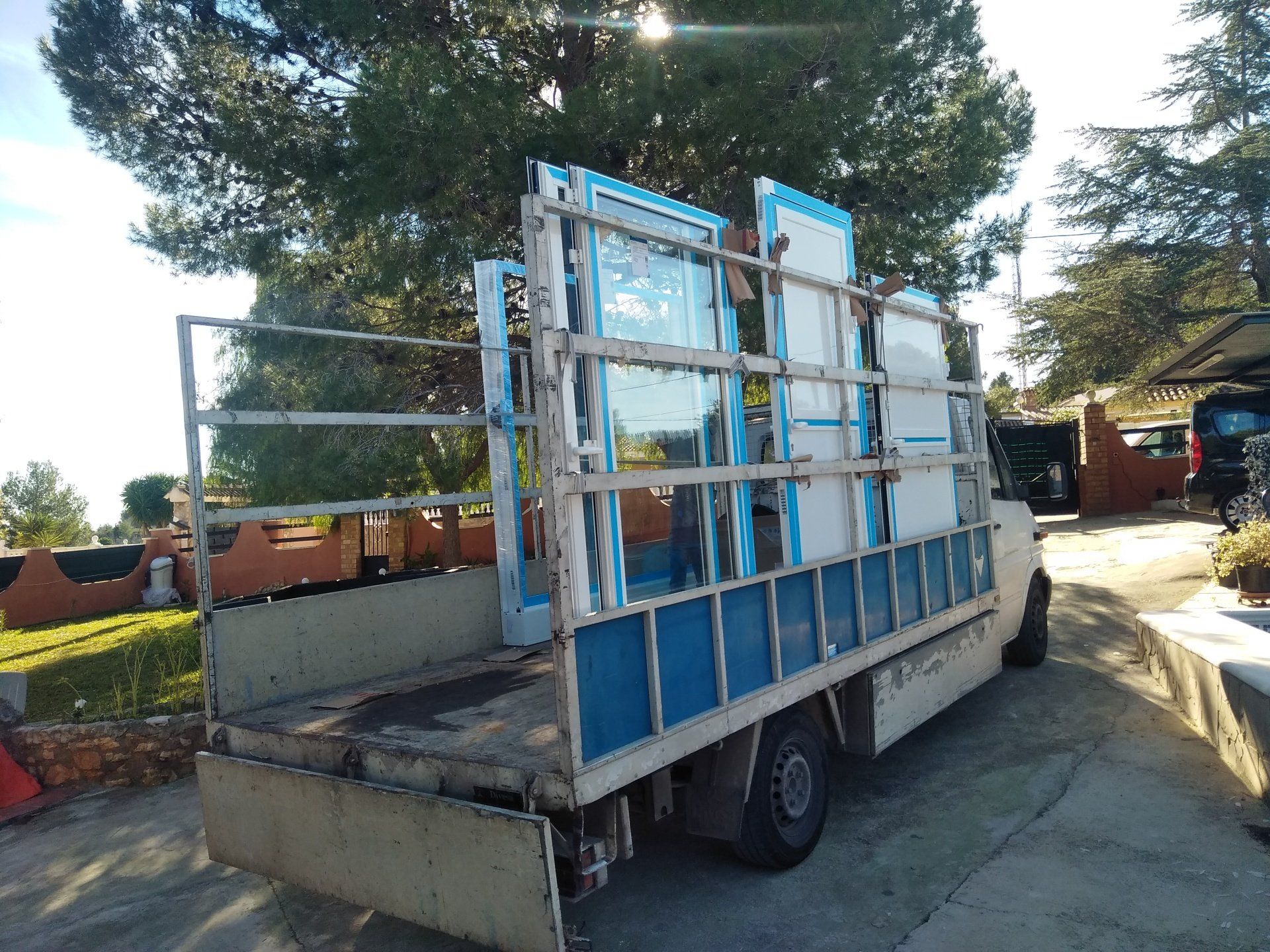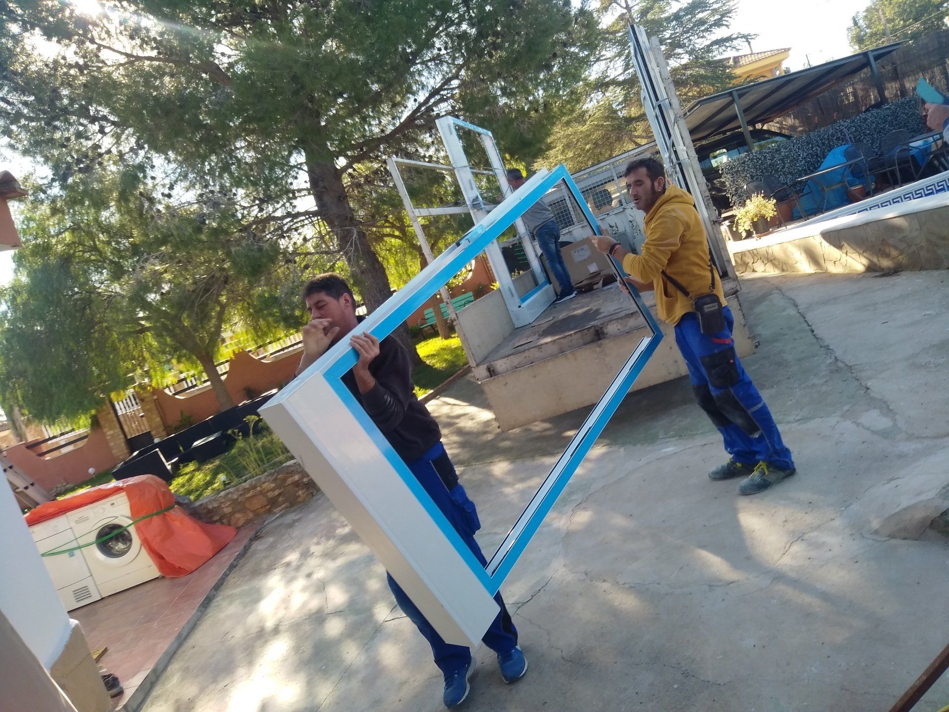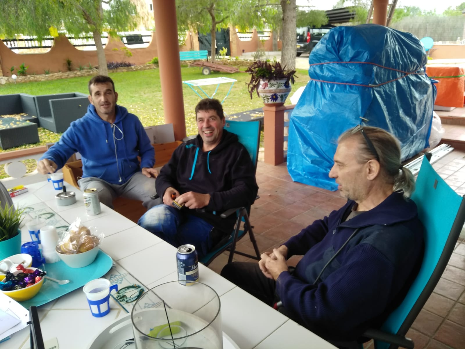 Onze huisraad staat deels bij buurman Jaime opgeslagen in de garage en deels staat het op de veranda op pallets en onder plastic.