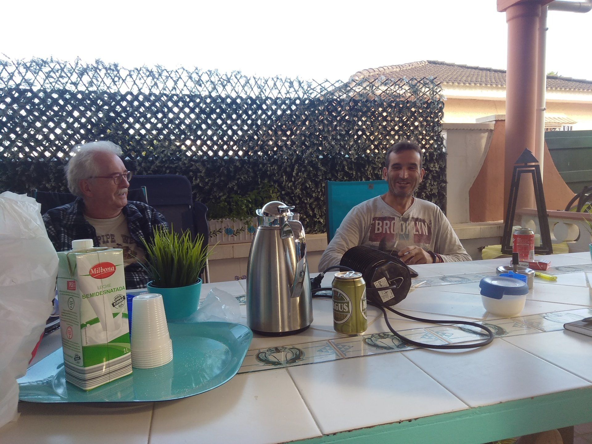 's Avonds is het fris en overdag is het redelijk en kunnen we met een vest aan buiten zitten.