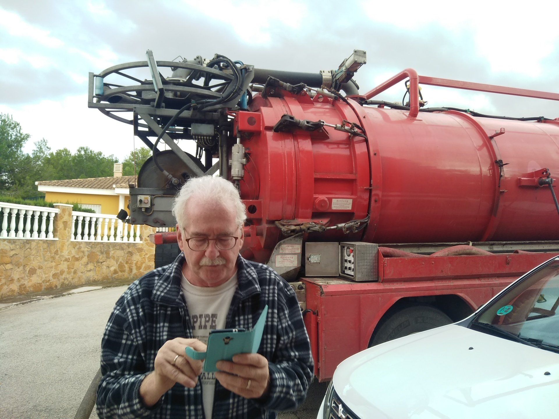 De septic tank werd opengemaakt en moest plotseling worden leeg gezogen (stinkend...) en bleek helemaal niet zo groot als gezegd bij de aankoop van het huis. Er wordt nog gezocht naar een grotere tank of 2e compartiment. Het bleek dat maar een deel van de tank is leeg gezogen.