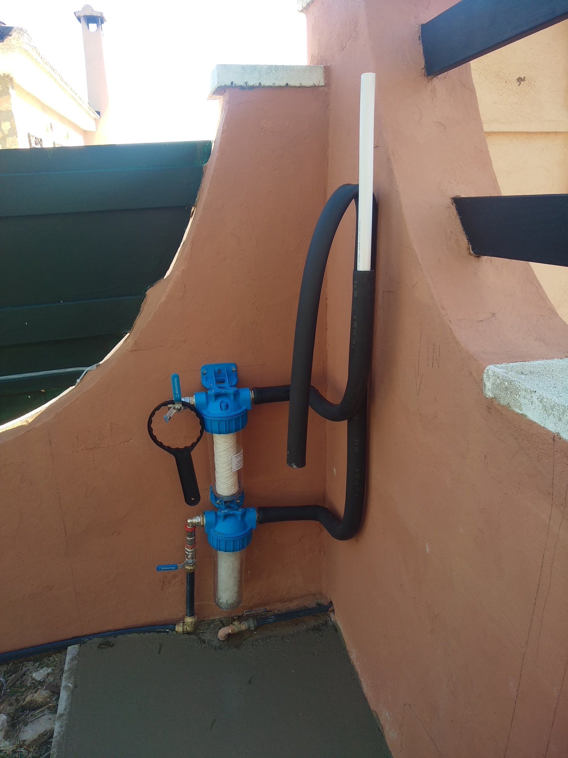 Voor het water is er een ontkalker geplaatst, omdat er hier heel veel kalk in het water zit en alle glazen bijna grijs zijn.