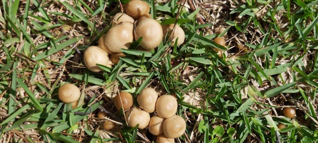 Het heeft zo vaak geregend dat de paddenstoelen in de tuin staan! Hoort meer bij herfst!