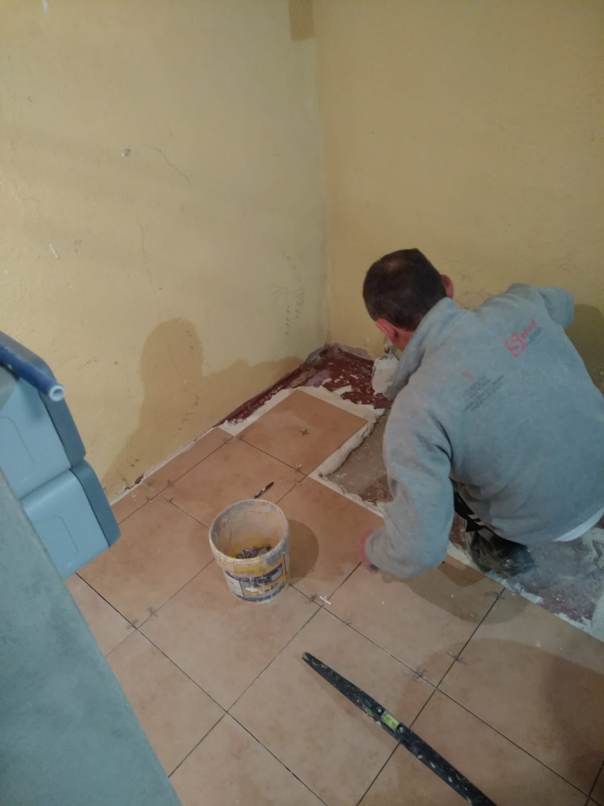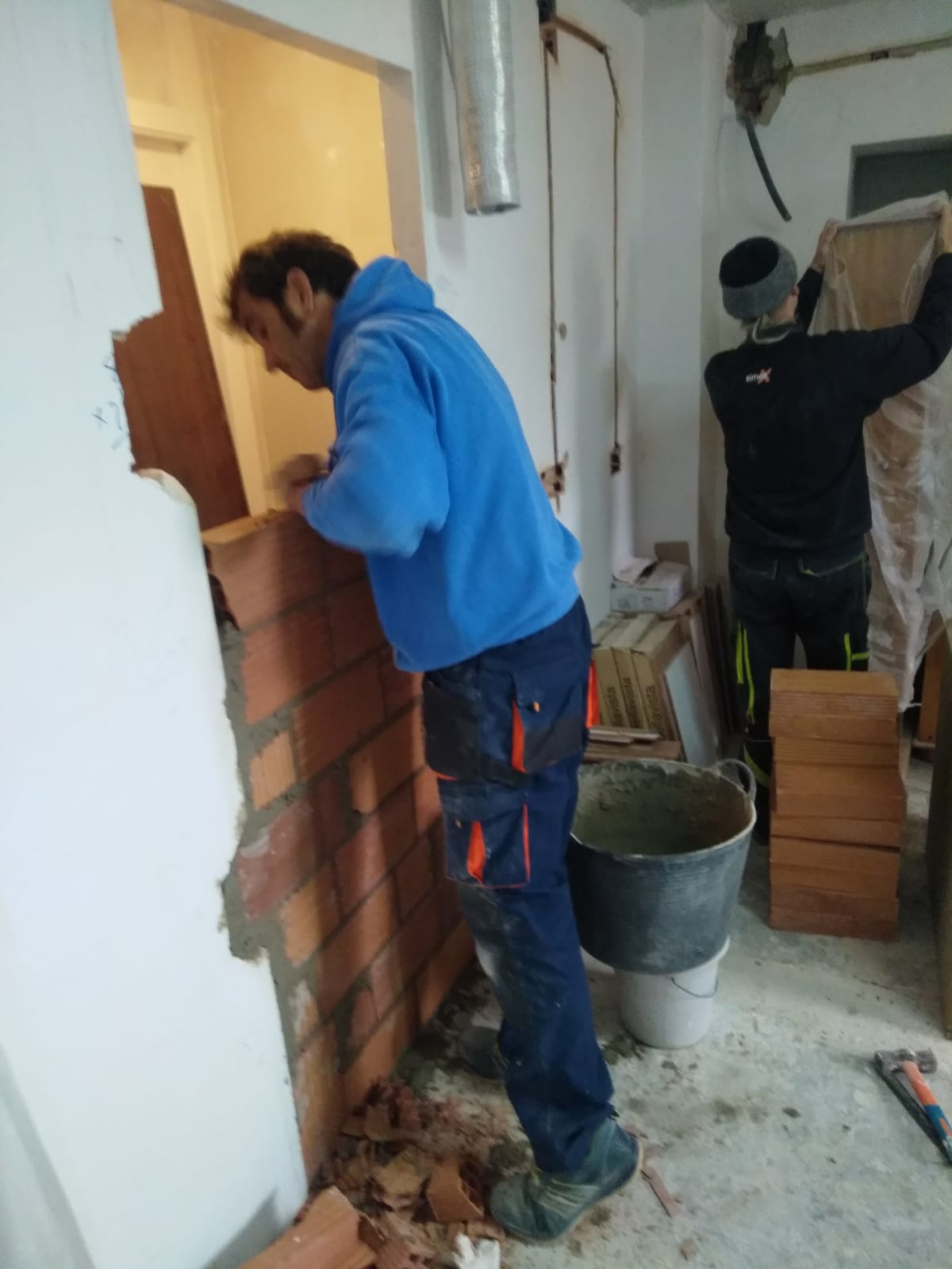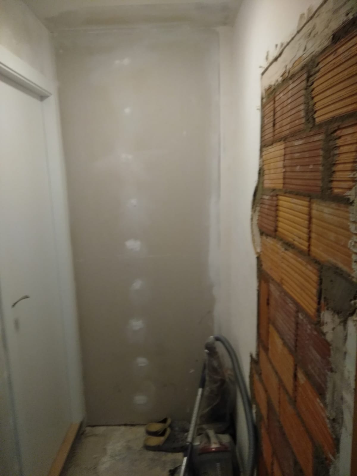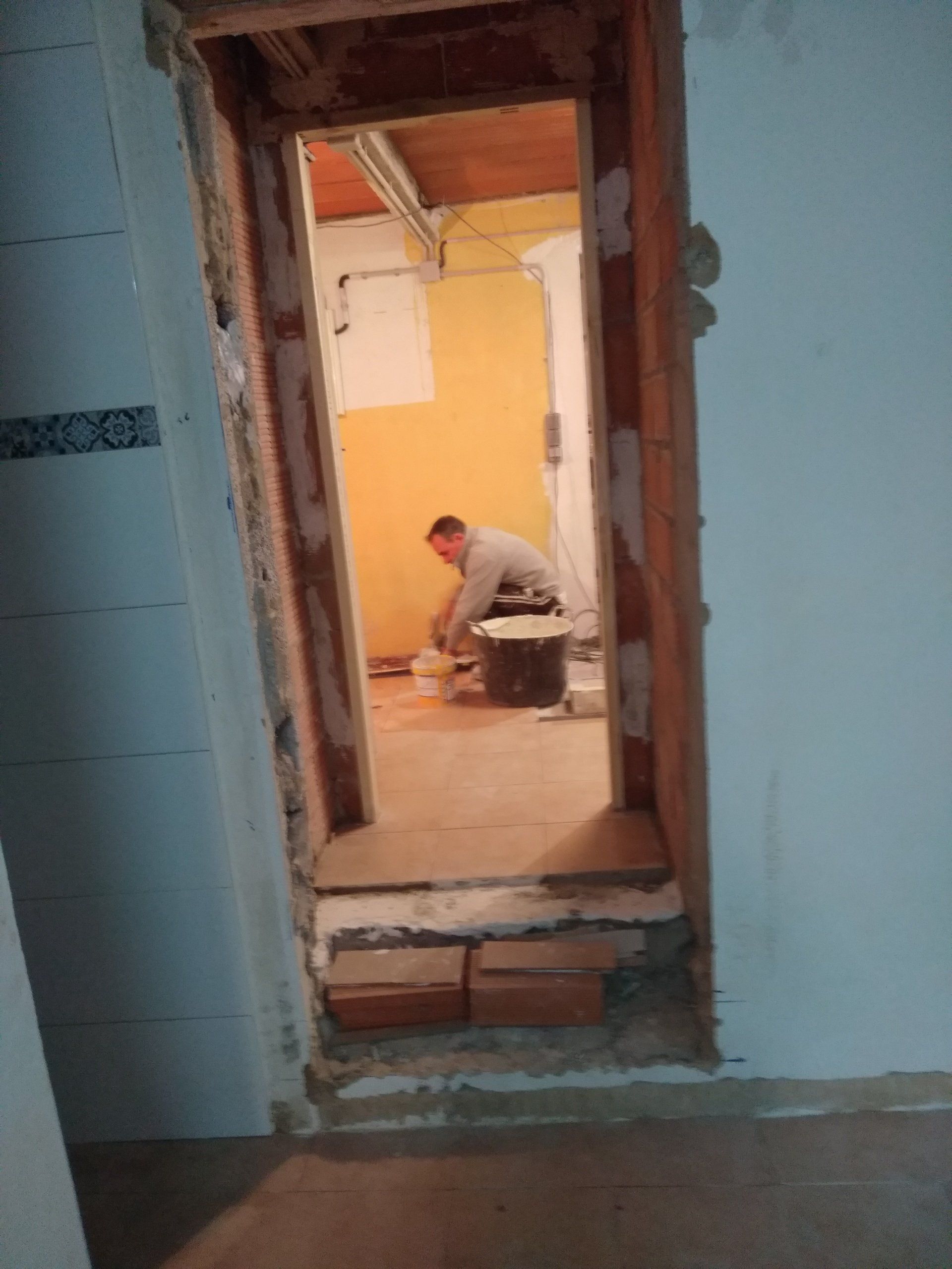 In de trastero is de vloer gelegd, een wc gebouwd en de wanden zijn getegeld. Er is een doorgang gemaakt naar de andere kamer, zodat er een nieuwe uitgang is gekomen via de trastero naar de paellero. Een soort achterom - zeg maar. Er is een hokje gekomen waarin de deuren nog geplaatst moeten worden.