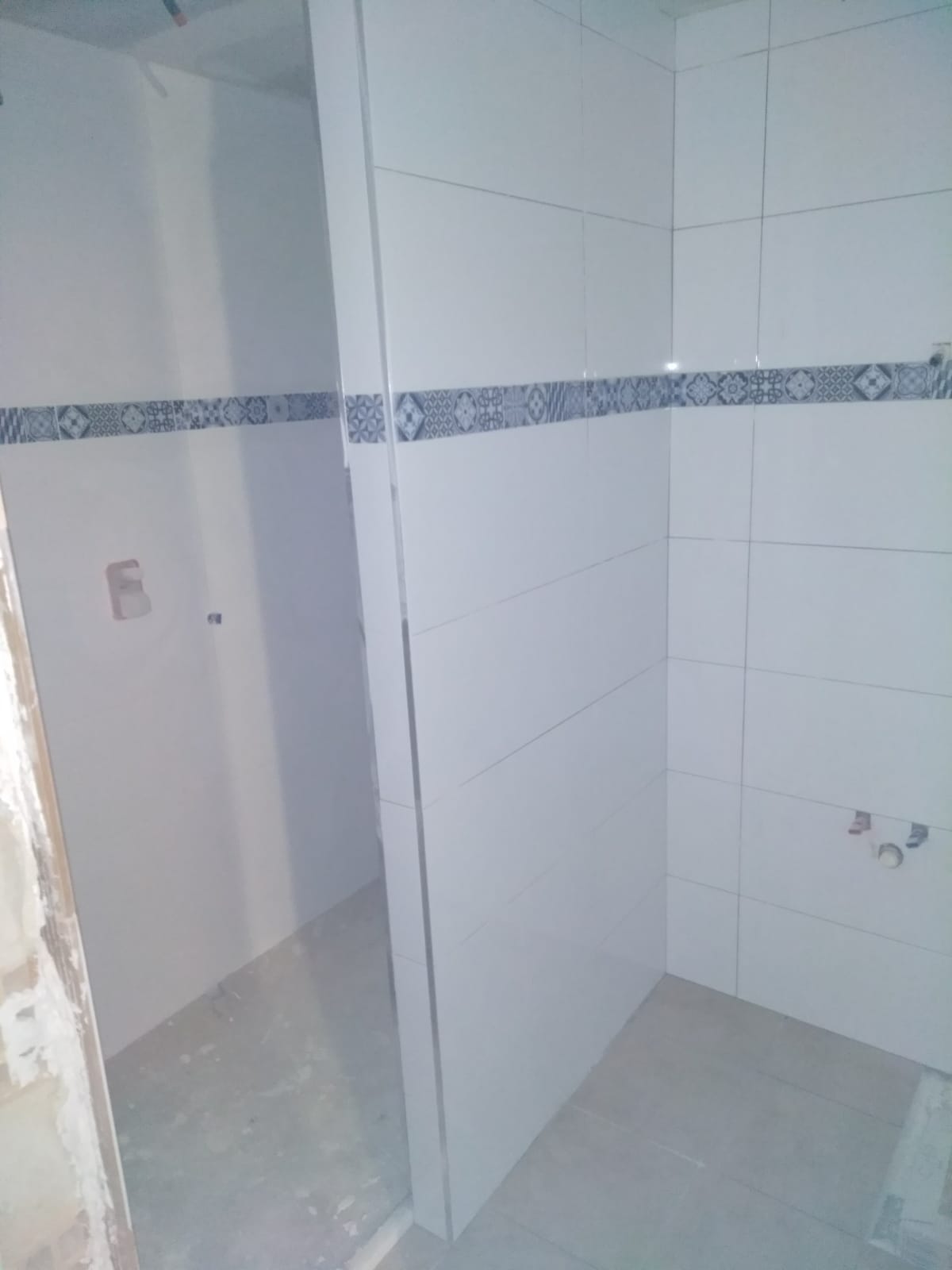 Onze slaapkamer met aangrenzende badkamer is bijna klaar. De vloer is gelegd, de badkamer met afvoer voor het water is gebouwd en betegeld, de douche zit erin. De badkamer spullen moeten nog geplaatst worden. Deuren moeten er nog in. 1 wand moet nog geïsoleerd worden. De elektriciteit moet worden worden gemaakt. Wanden moeten nog worden gestuct.