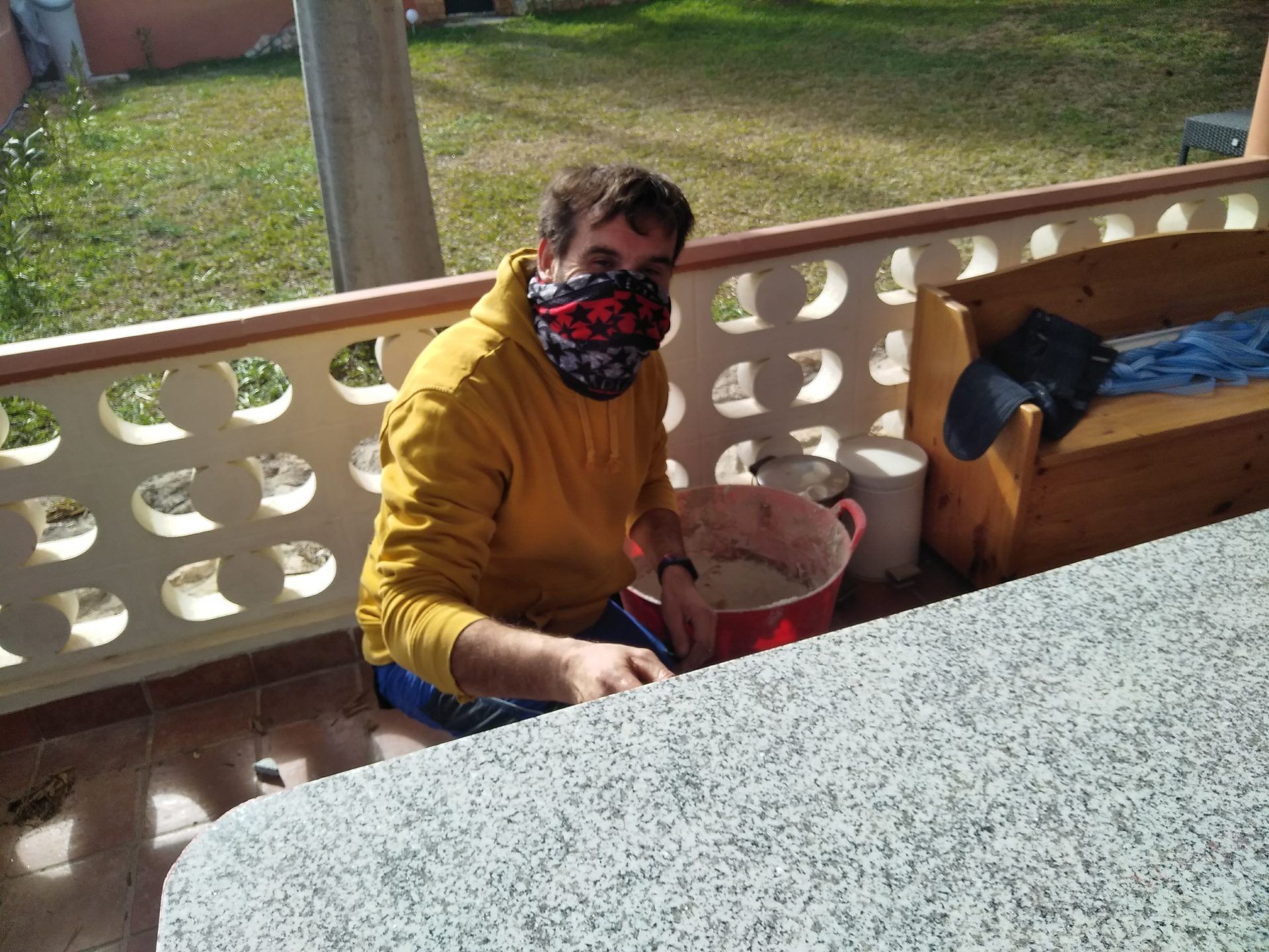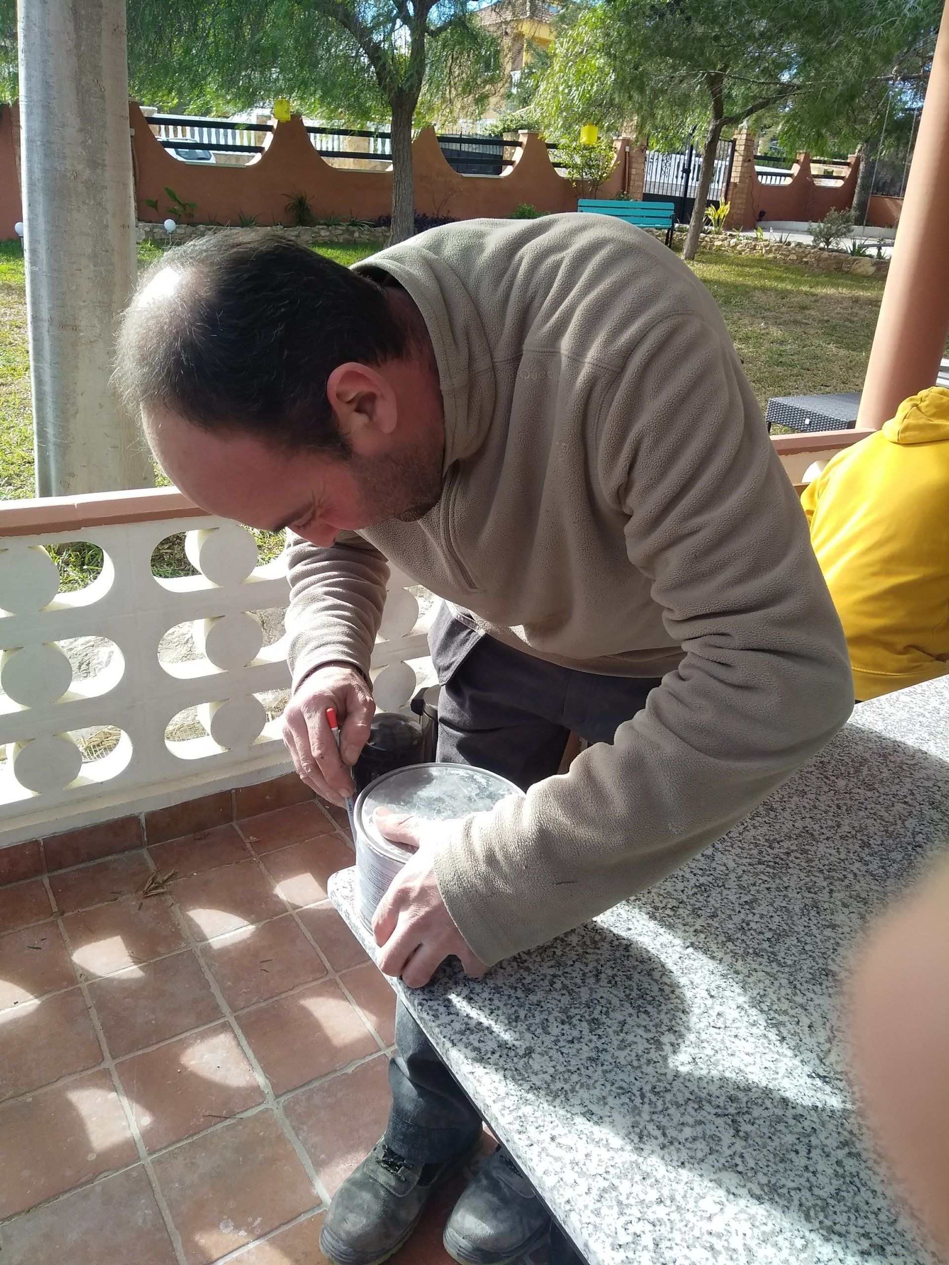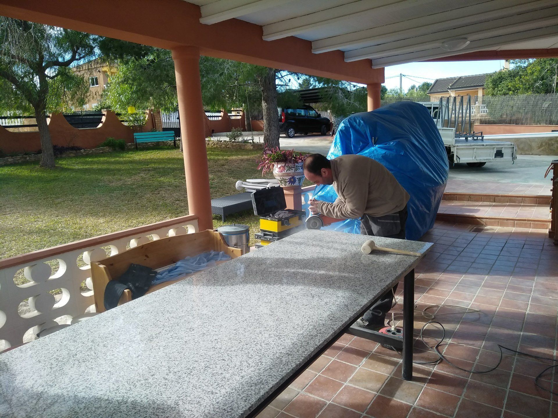 De paellero is zo goed als klaar. De vloer is gelegd, maar moet nog gevoegd worden, het plafond nog gewit, de keuken is geplaatst met een mooi granieten aanrechtblad, de keukenapparatuur moet nog geplaatst worden, maar dan .... is het af.